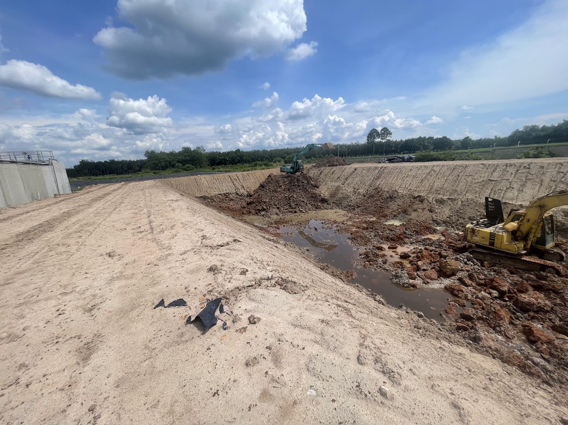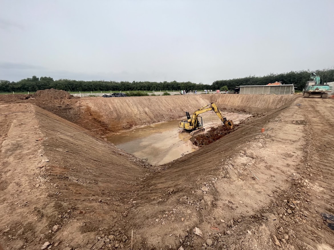 Hồ chứa nước sạch lót bạt HDPE cho trang trại heo.